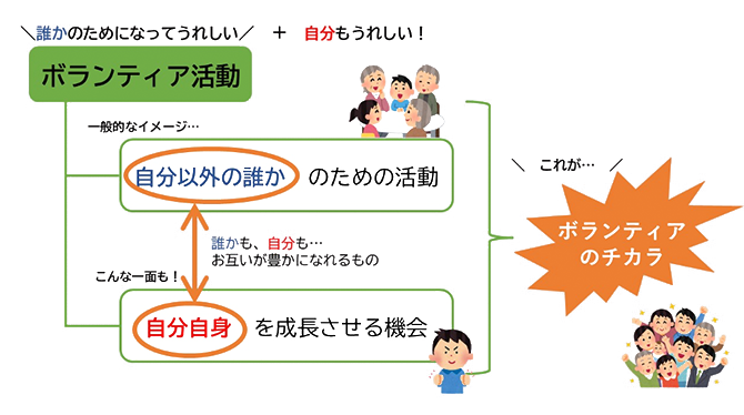 ボランティアは、自分以外の誰かのために活動することによって、感動や喜びを得ることが出来ます。